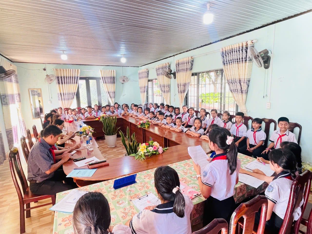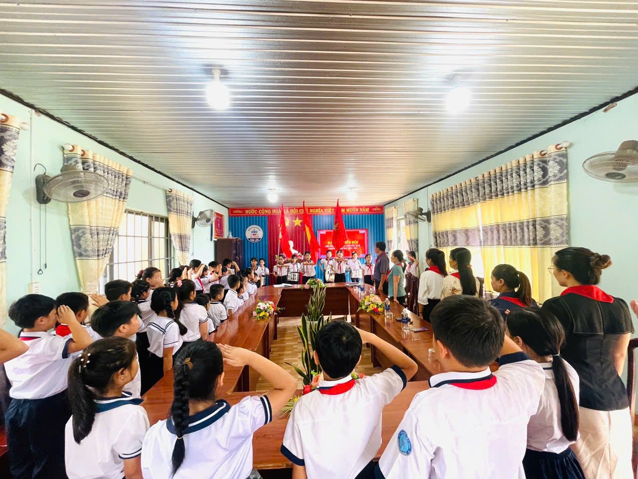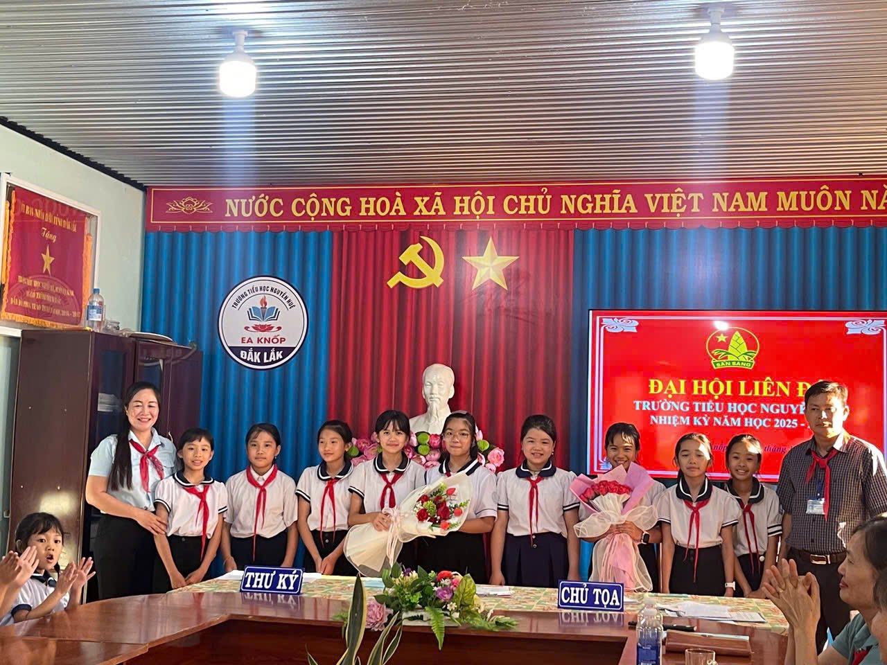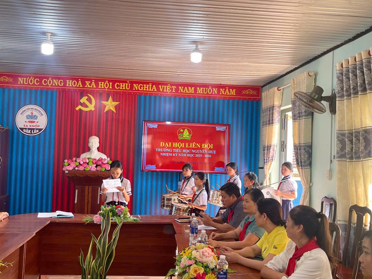 Chiều ngày 02/10/2025 Liên đội Trường tiểu học Nguyễn Huệ đã long trọng tổ chức Đại hội Liên đội nhiệm kì 2025-2026. Về dự với Đại hội có thầy Bùi Văn Thành Bí thư chi bộ – HT nhà trường, các thầy cô cùng các anh chị phụ trách chi đội và gần 50 bạn đội viên nhi đồng xuất sắc về tham dự.