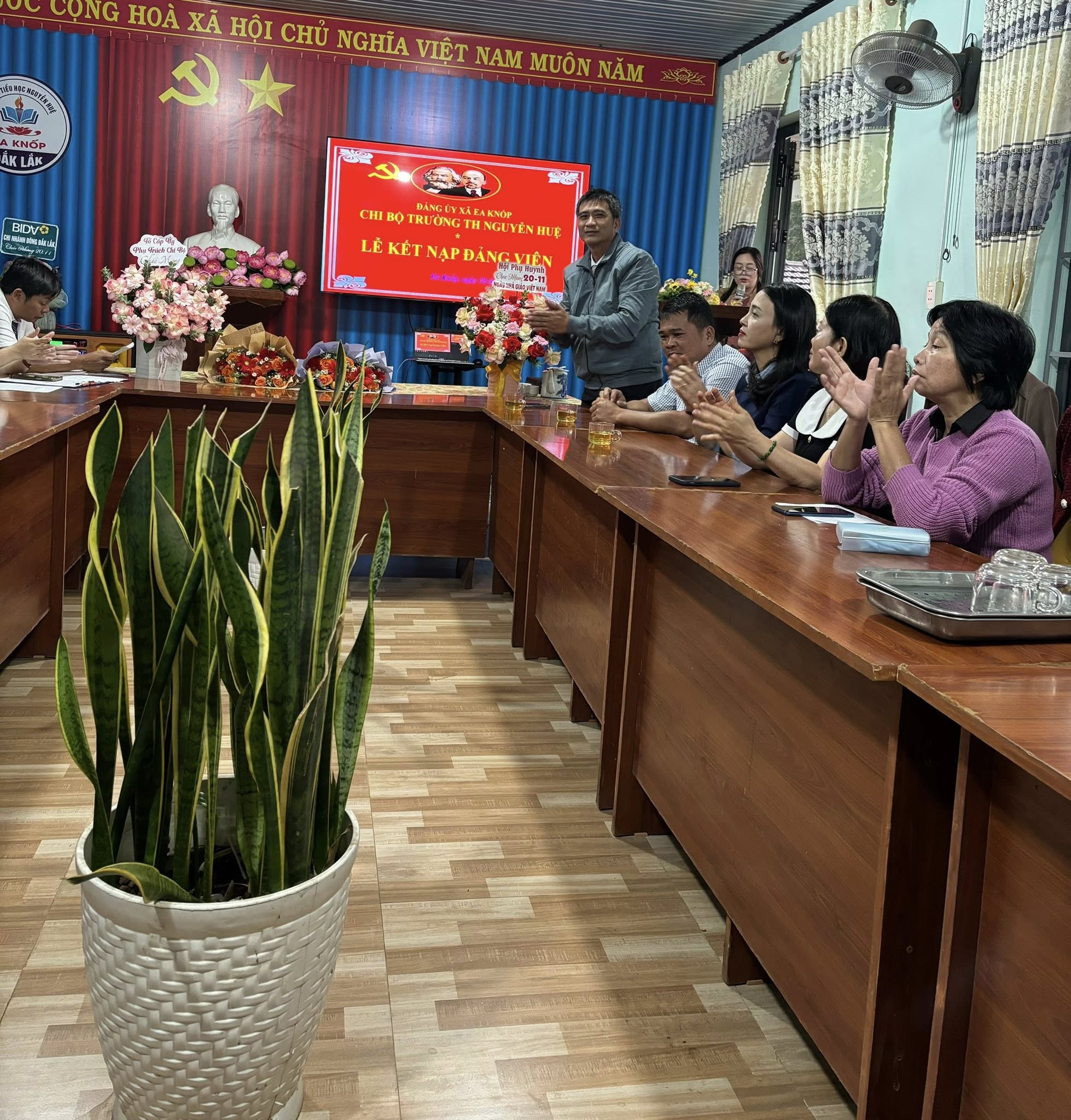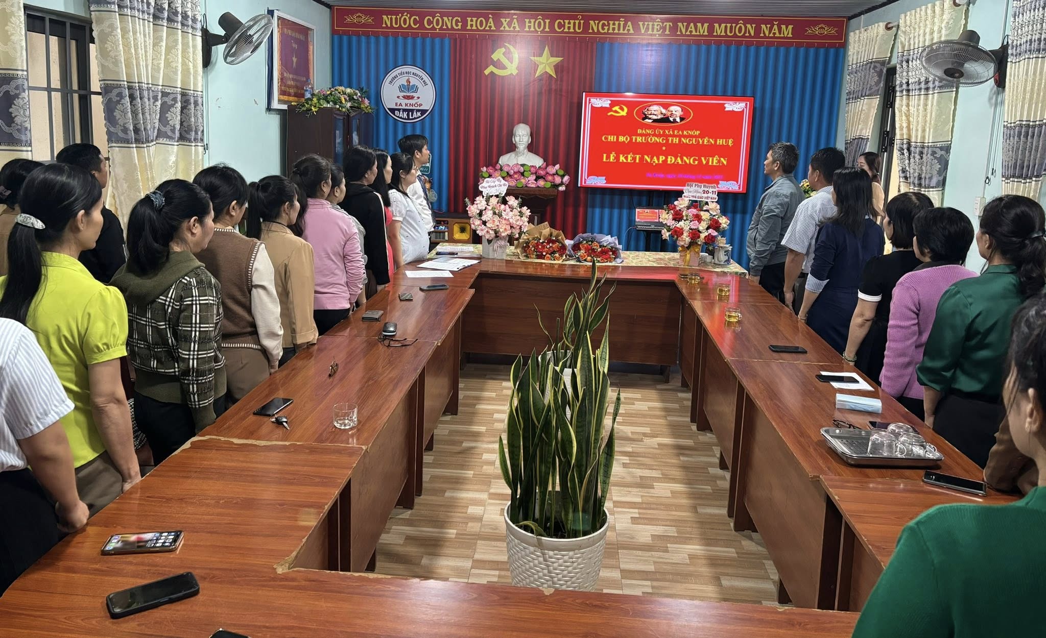Trong không khí hân hoan chào mừng kỷ niệm 43 năm Ngày Nhà giáo Việt Nam (20/11), trường tiểu học Nguyễn Huệ thêm niềm vui và tự hào khi vinh dự kết nạp hai quần chúng ưu tú vào hàng ngũ Đảng. Đây là minh chứng cho sự lớn mạnh, phát triển không ngừng của đội ngũ và tinh thần “trồng người” của nhà trường.