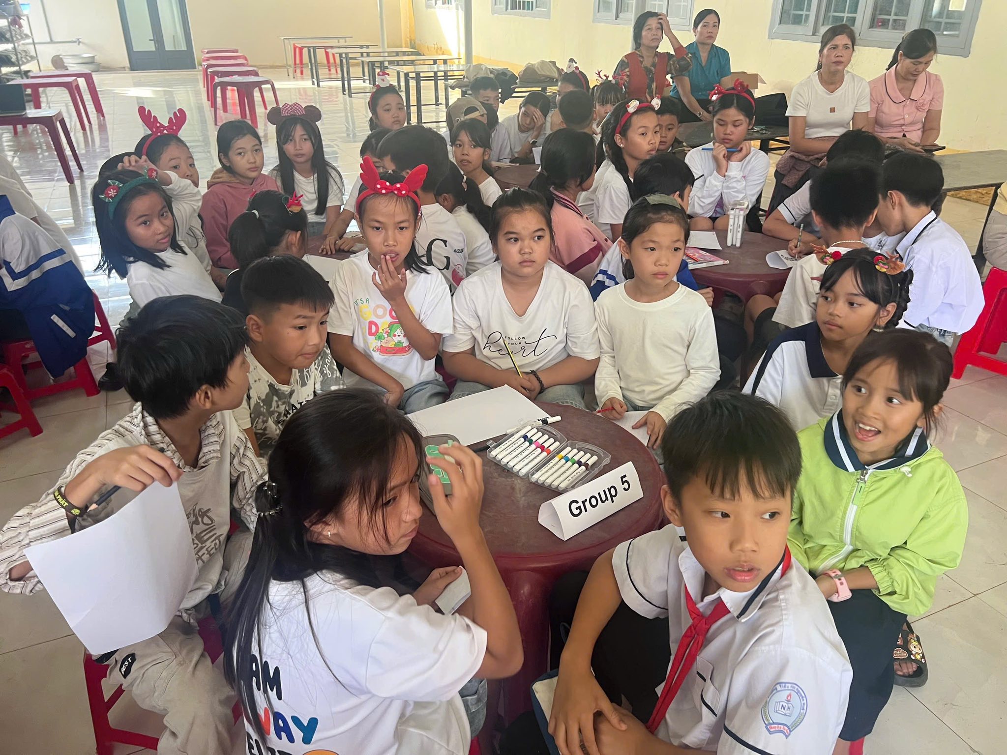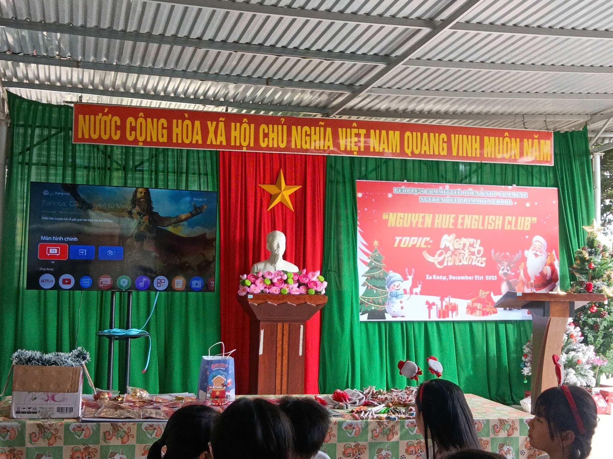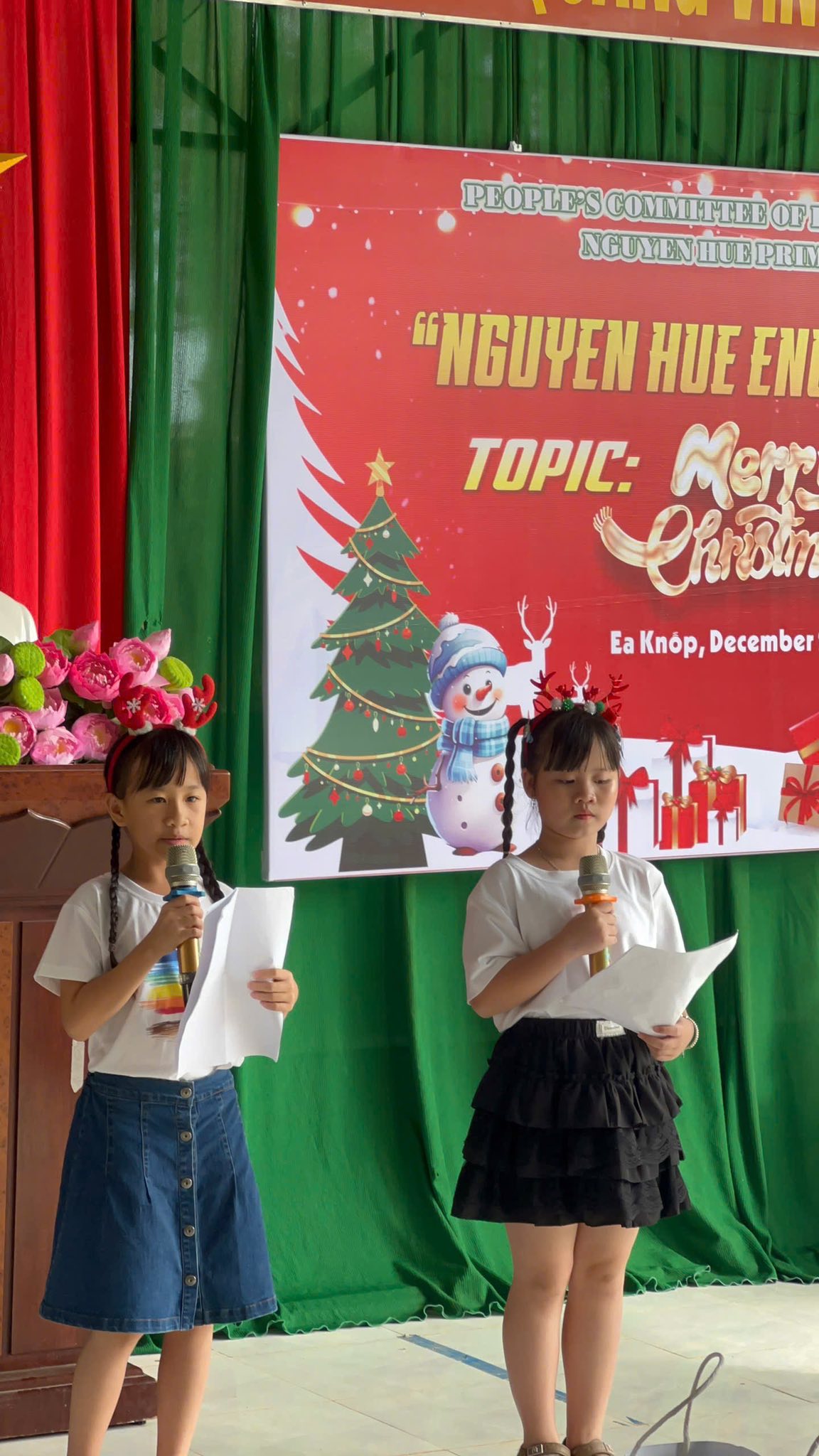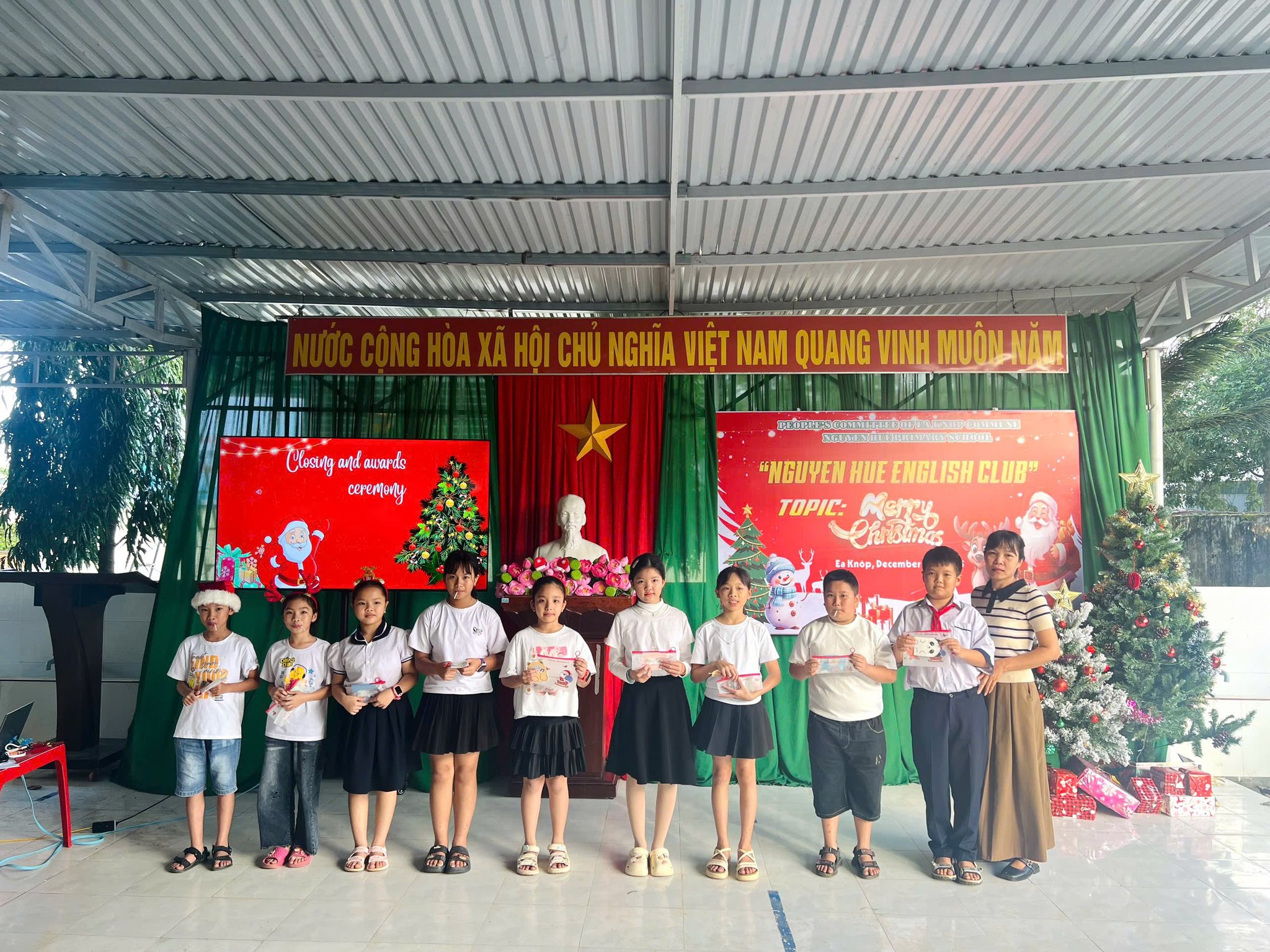 Trong không khí rộn ràng của những ngày cuối năm 2025, các bạn nhỏ khối 4 và 5 của Trường tiểu học Nguyễn Huệ đã có buổi sinh hoạt Câu lạc bộ tiếng Anh vô cùng sôi động với chủ đề “Lễ Giáng Sinh”. Các bạn đã được tham gia vào các trò chơi sôi động, được chia thành những nhóm nhỏ đầy hào hứng để tham gia thử thách sáng tạo: thi cắt dán ruy băng thành hình cây thông Noel. Bằng sự khéo léo và tinh thần đồng đội, những dải ruy băng xanh, đỏ rực rỡ đã được các em biến hóa thành những cây thông độc đáo. Hoạt động không chỉ giúp các em trau dồi vốn từ vựng về chủ đề lễ hội mà còn tạo điều kiện để các bạn rèn luyện kỹ năng làm việc nhóm và tự tin giao tiếp bằng tiếng Anh trong một không gian tràn đầy niềm vui.
