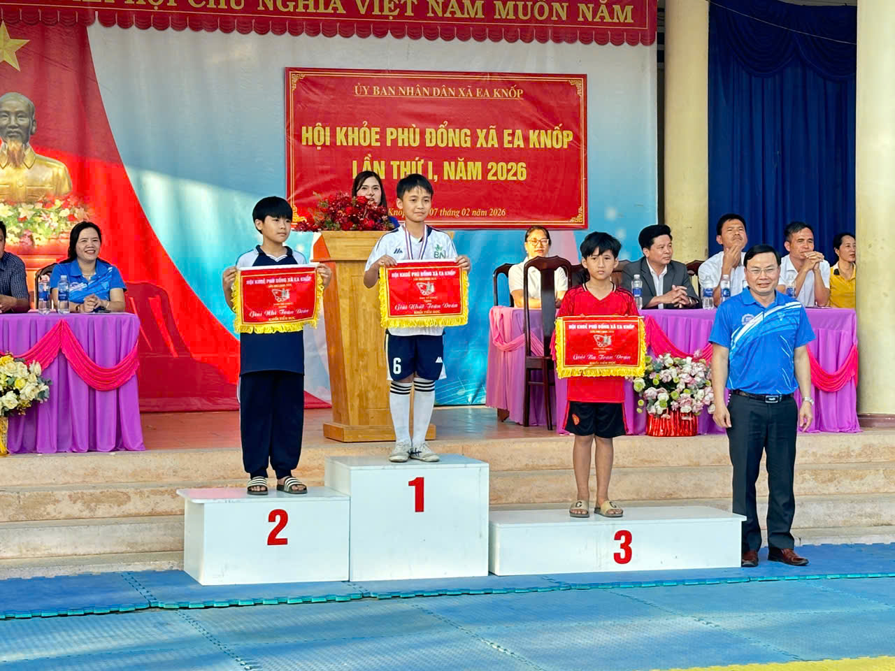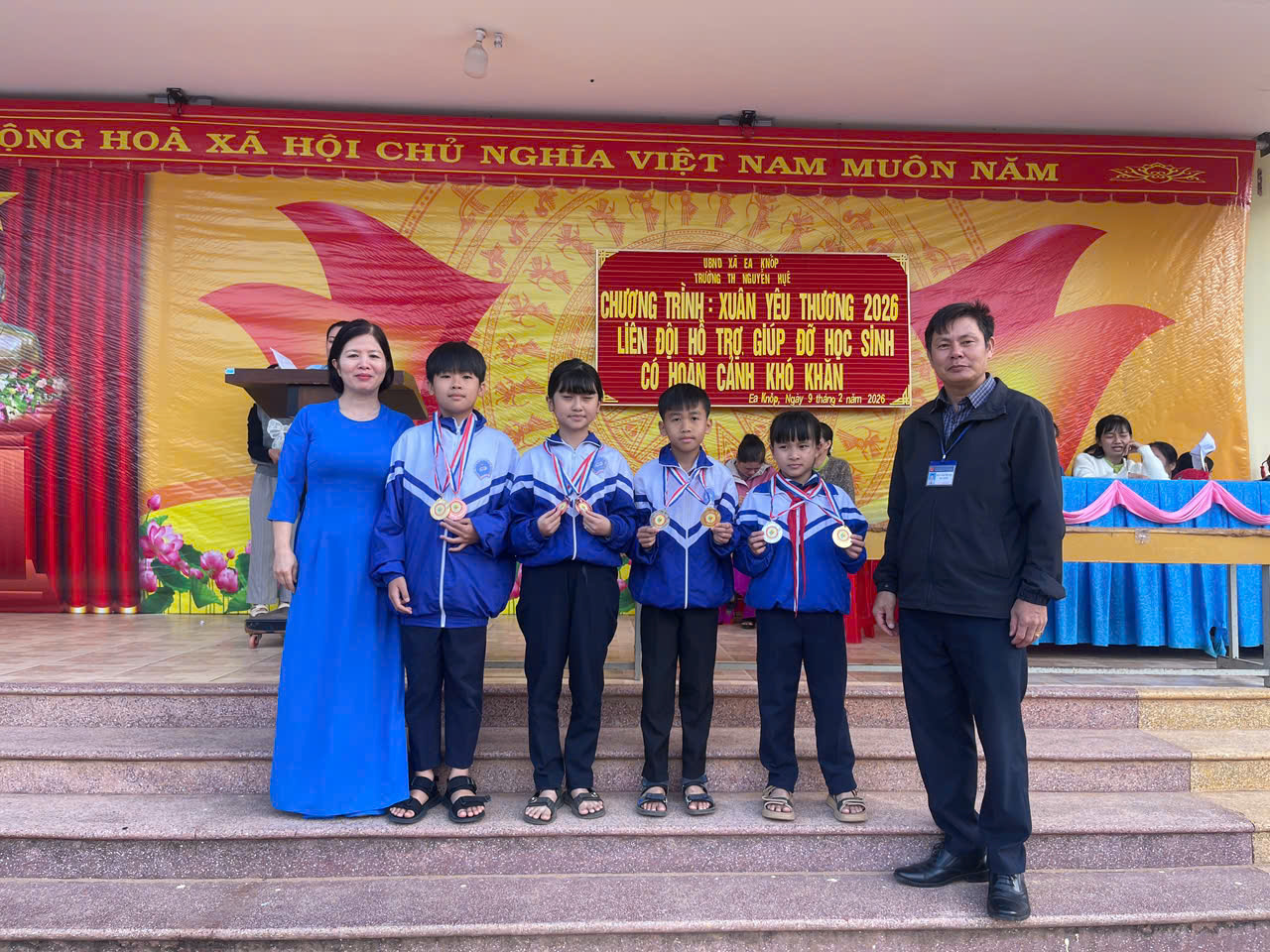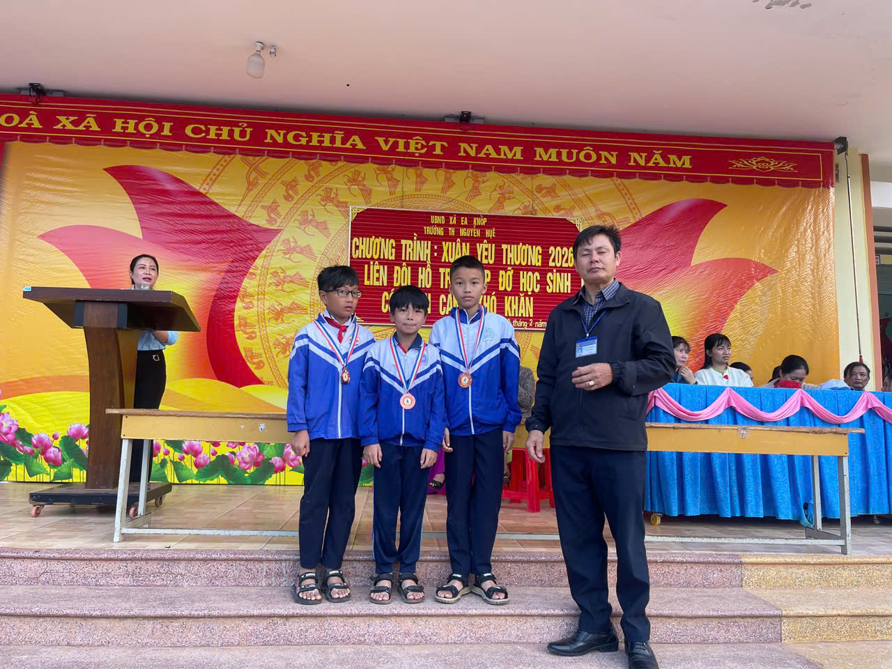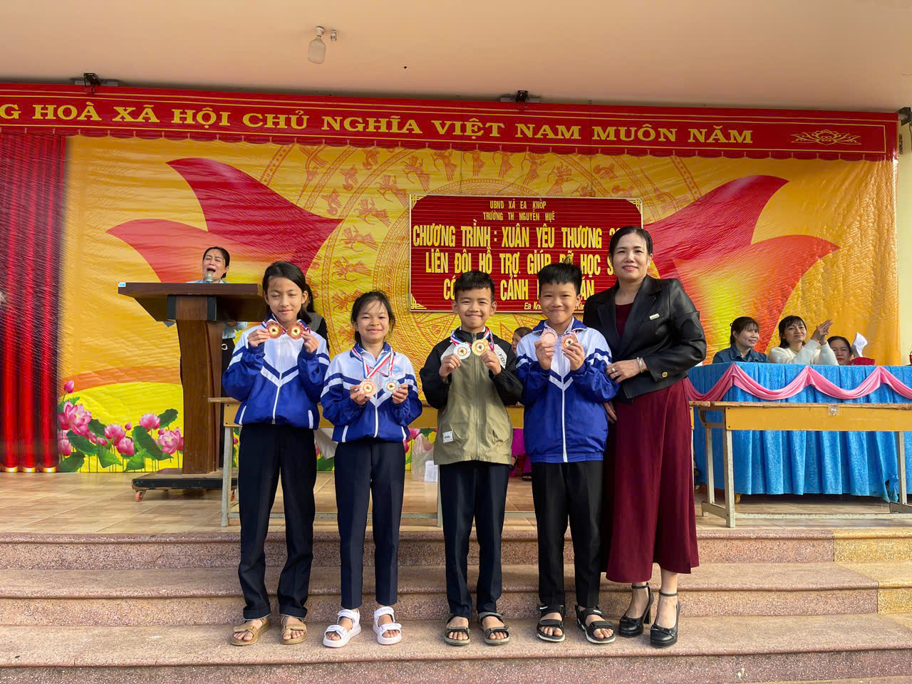 Trao thưởng cho các em học sinh đạt thành tích trong Hội khỏe Phù Đổng cấp xã lần thứ nhất