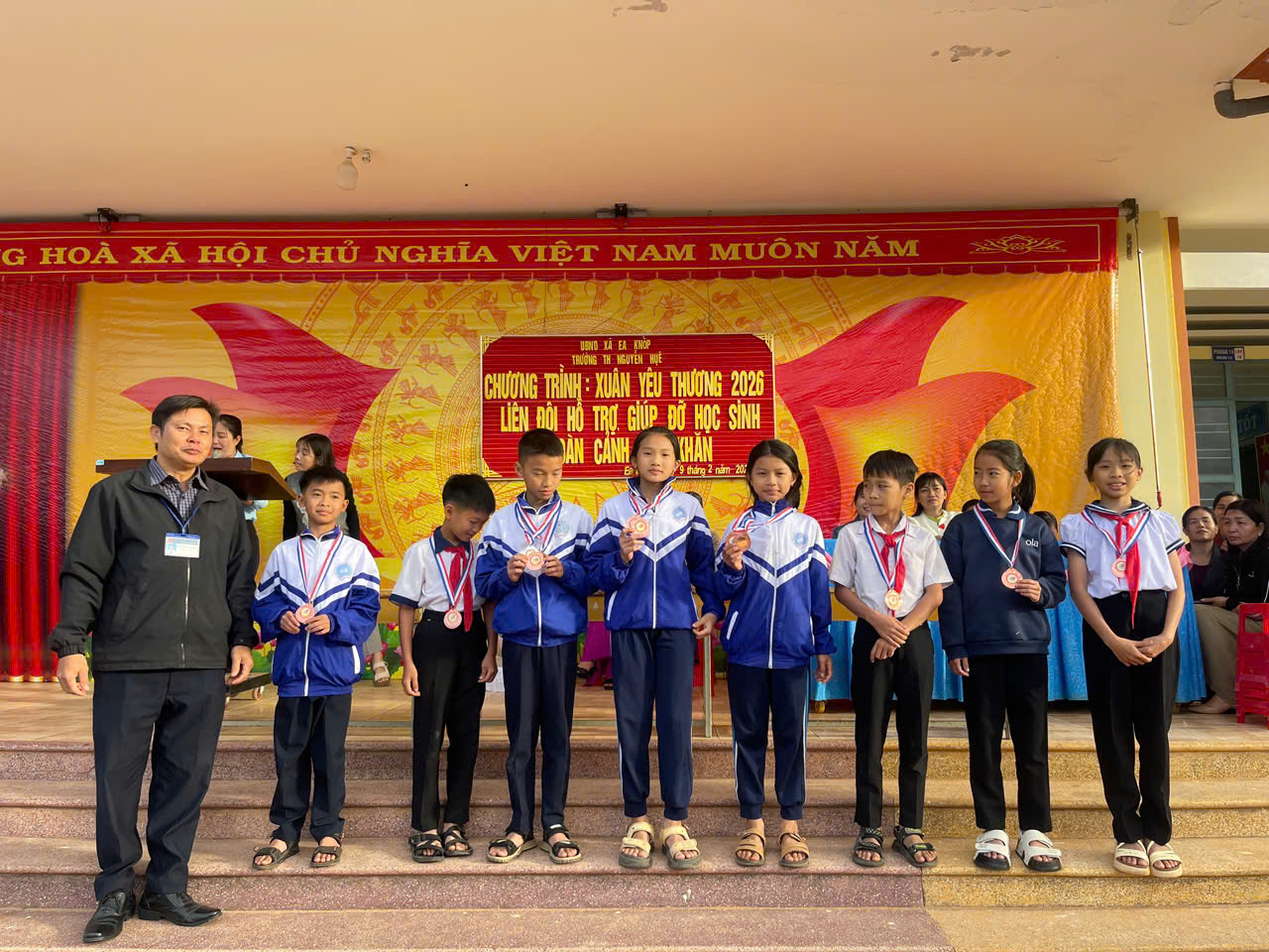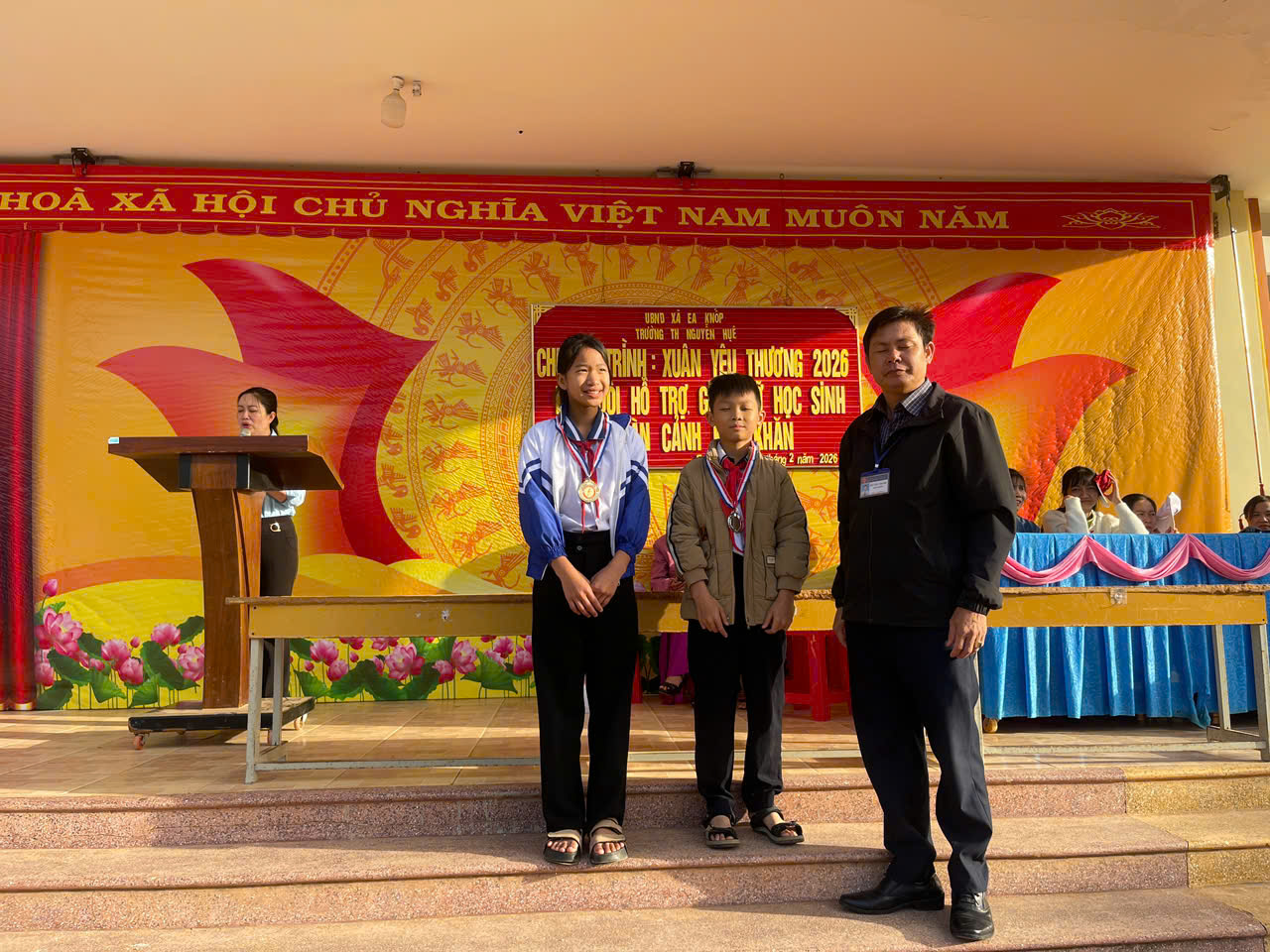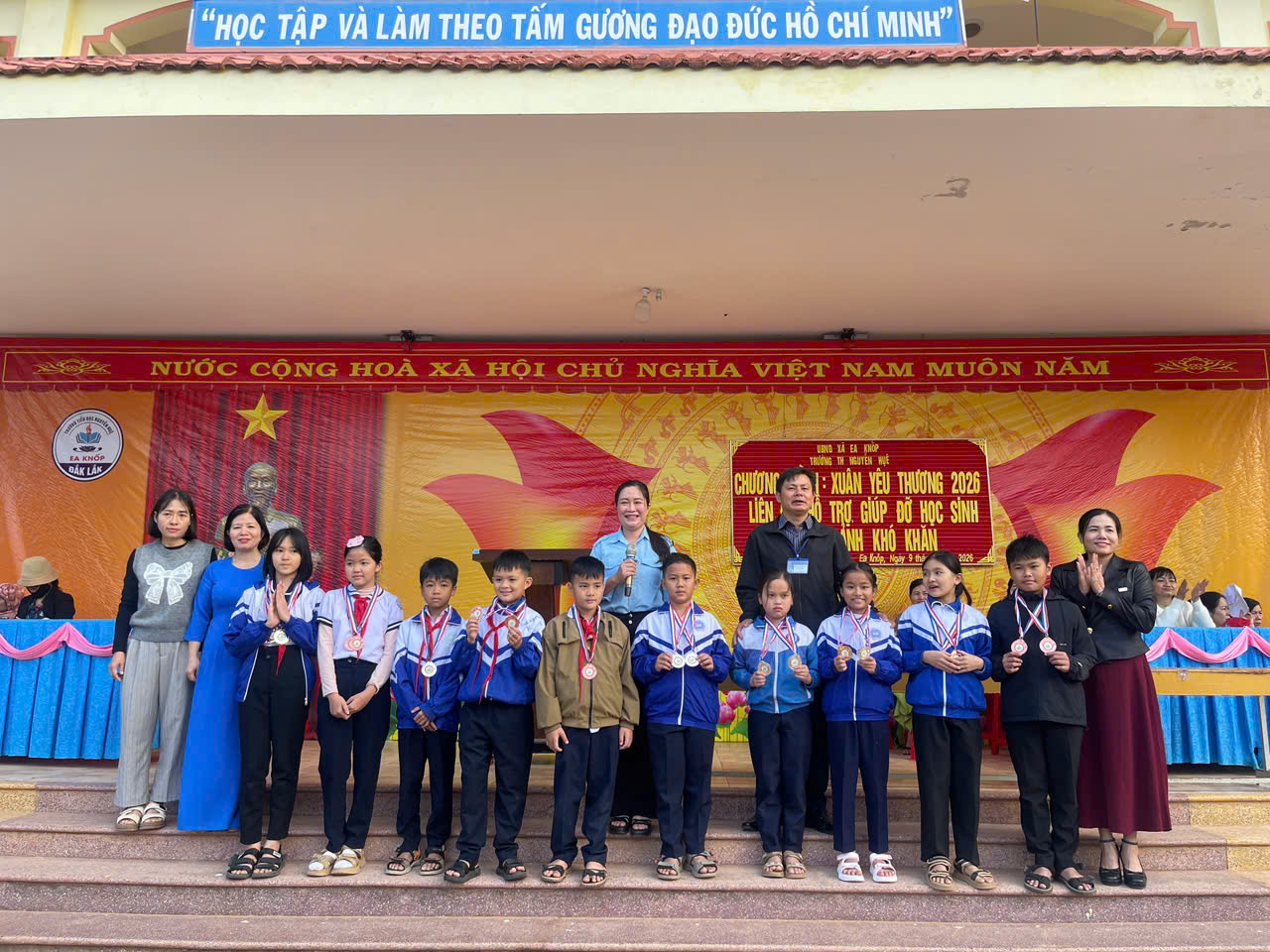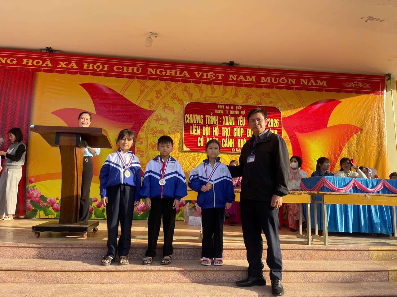 Trao thưởng cho các em học sinh đạt thành tích trong Hội khỏe Phù Đổng cấp xã lần thứ nhất